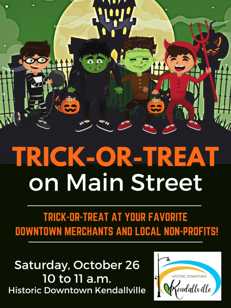 Downtown Kendallville merchant’s host trick-or-treaters from 10-11am.